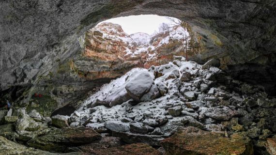 Самая длинная гипсовая пещера Башкирии, открытая лишь в 1996 году. Вход - воронка глубиной 40 м. Общая длина ходов 1768 м.