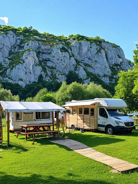 12 питчей площадью 75 кв.м. с подключением к электроэнергии и водоснабжению, а так же 6 питчей для палаток 65 кв.м.